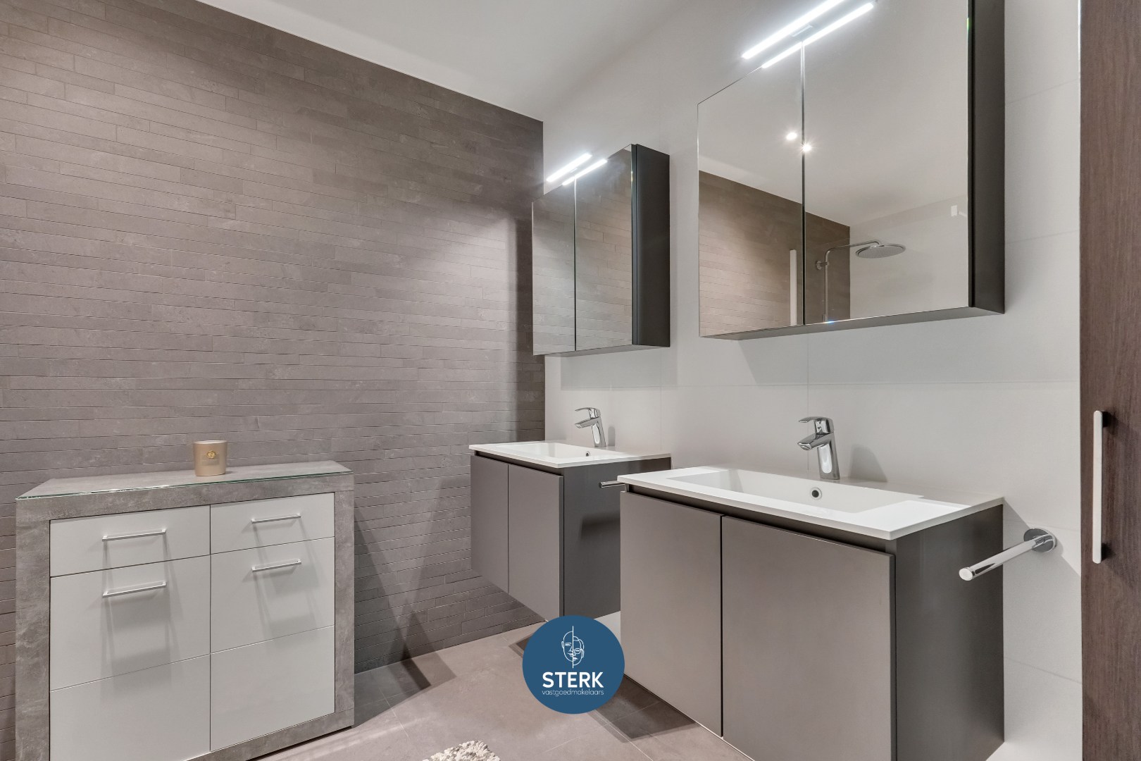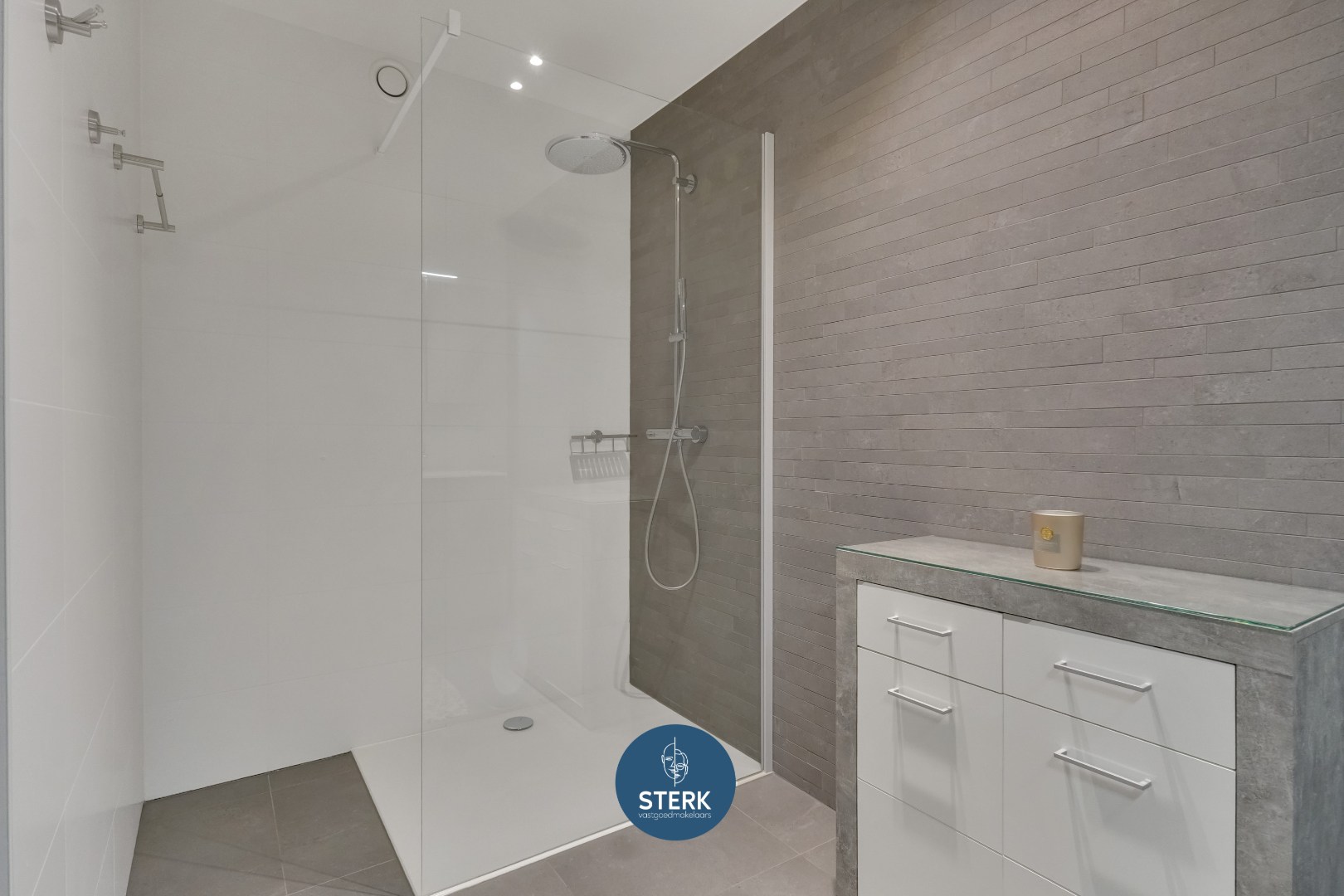 Het penthouse beschikt over 3 slaapkamers die flexibel kunnen worden ingericht, alsook een badkamer. De badkamer is modern afgewerkt en voorzien van een dubbele lavabo en een inloopdouche.