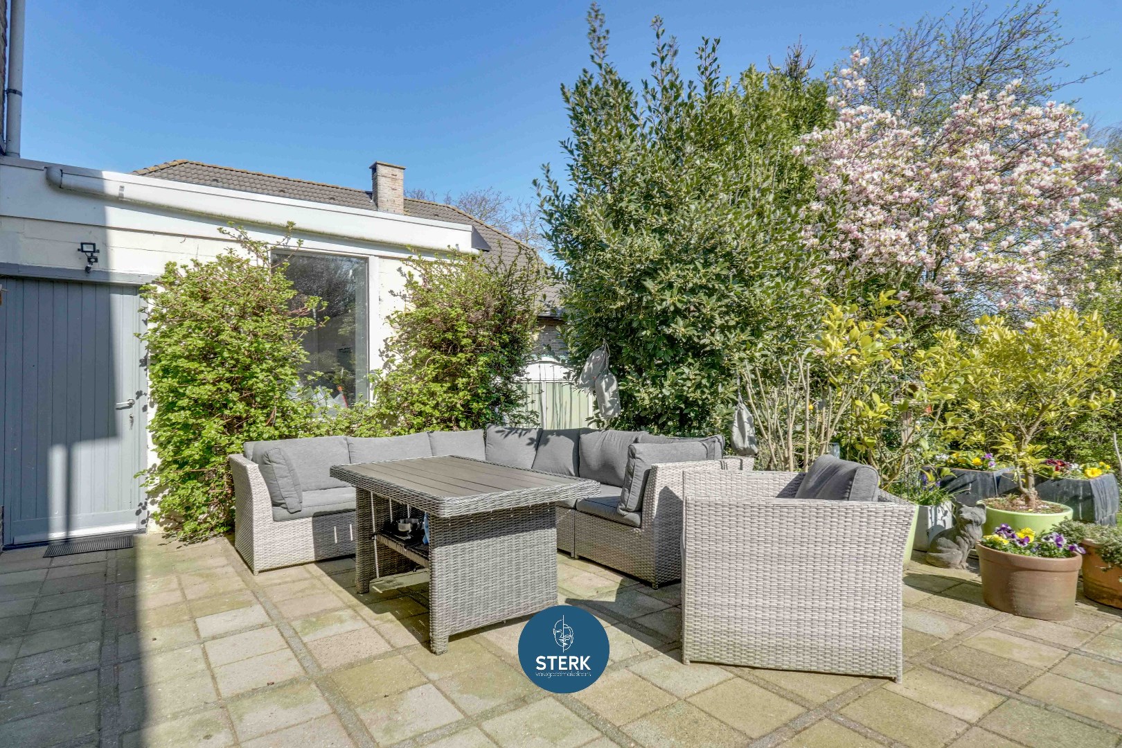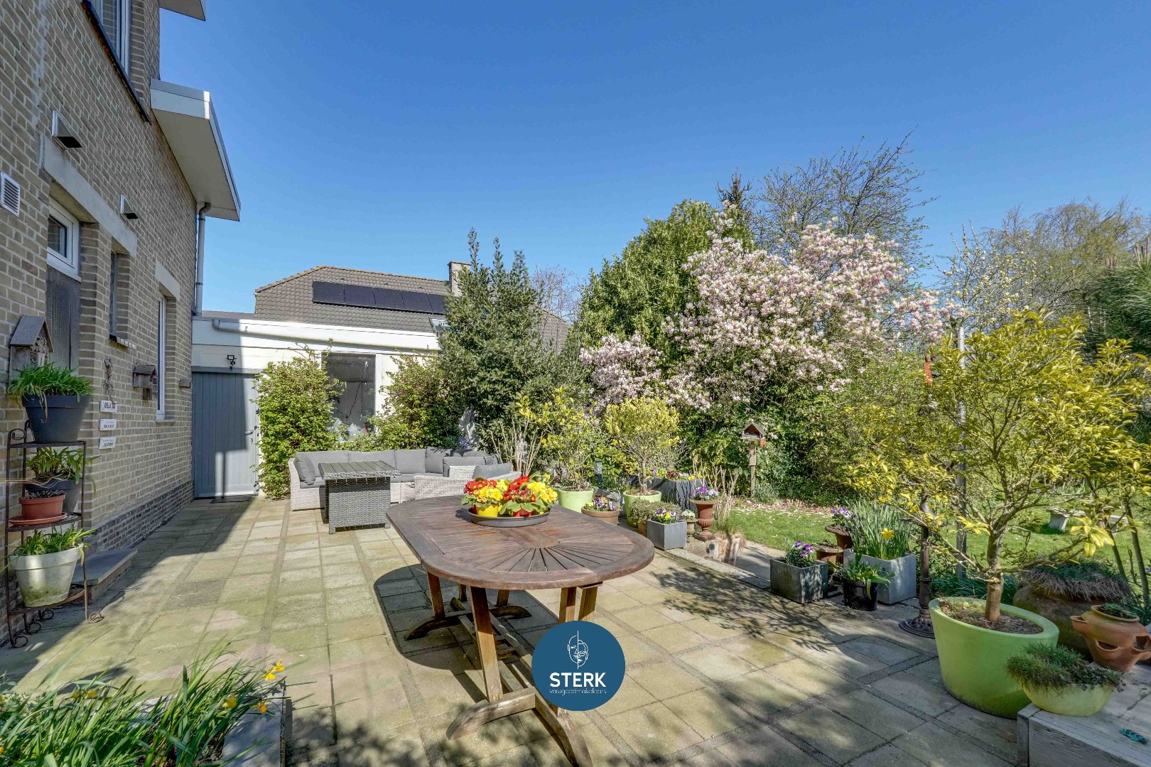 Wat deze woning echt uniek maakt, is de prachtige en diepe tuin. De tuin is volledig aangelegd met verschillende zithoeken, meerdere bomen en een overvloed aan groen. Perfect voor gezinnen, tuinliefhebbers of gewoon om in alle rust te genieten van de natuur.