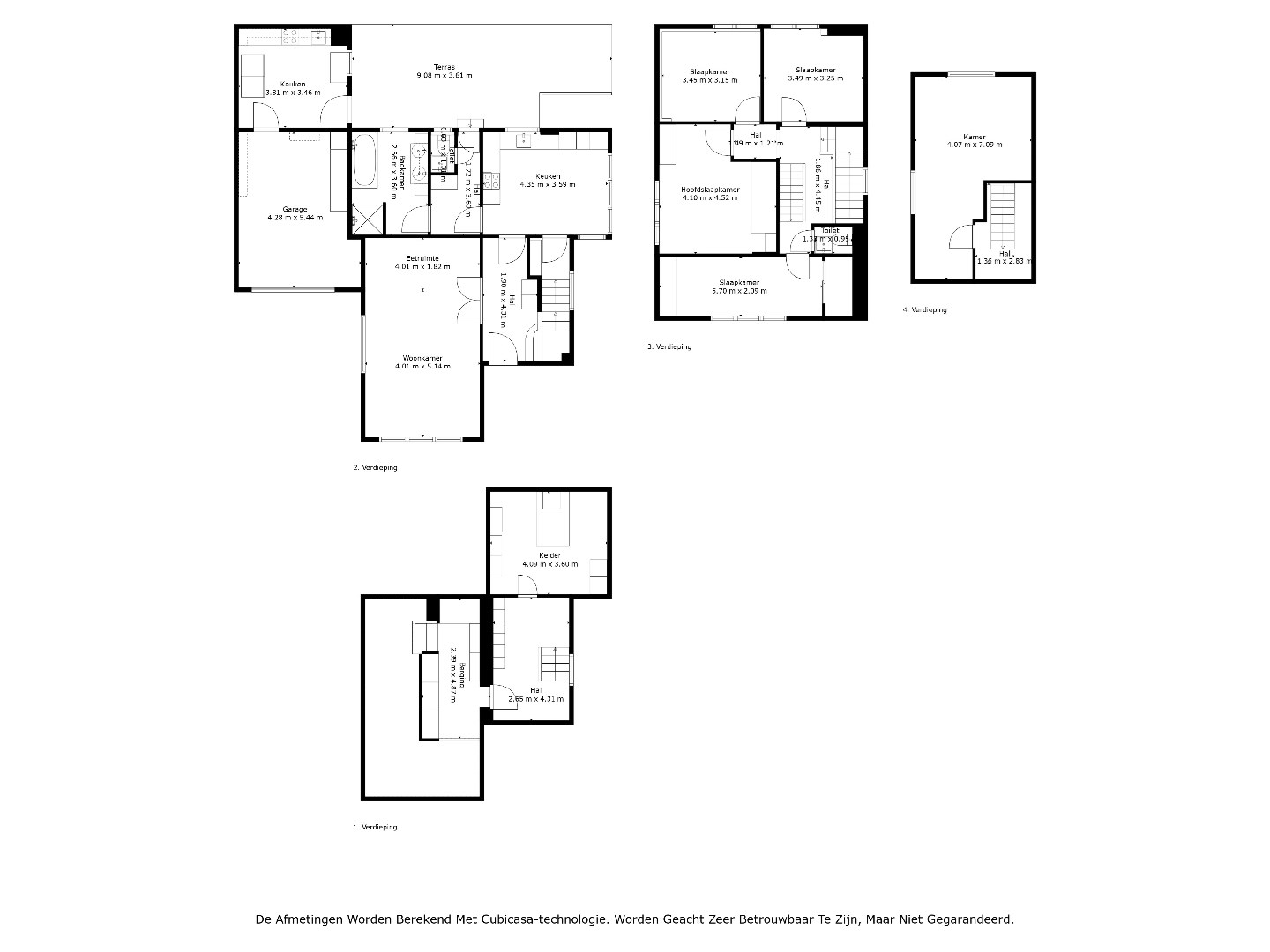 Op de eerste verdieping zijn er 4 comfortabele slaapkamers aanwezig, met oppervlaktes tussen de 11 en 19 m². Ook bevindt zich hier een extra toilet en een vaste trap naar de zolderverdieping. De afgewerkte zolder kan dienen als extra slaapkamer, bureau of hobbyruimte.