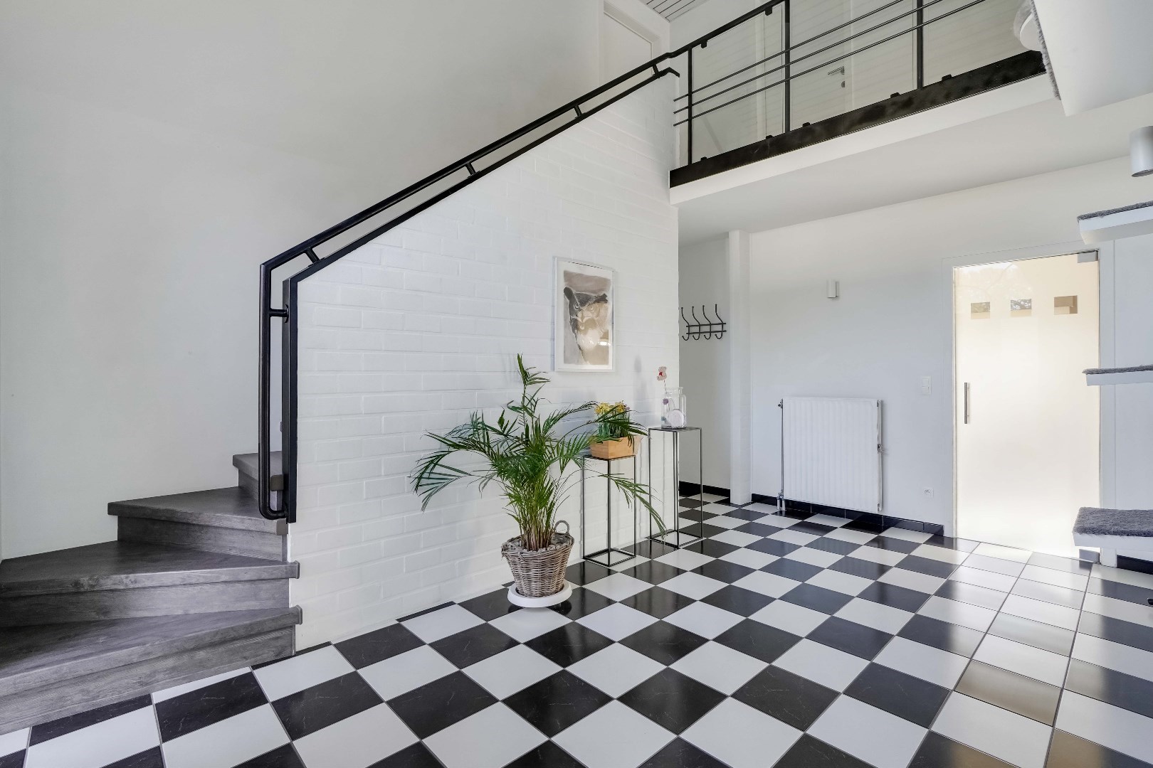 Via de inkomhal met gastentoilet, komt men binnen in het lichtrijke leefgedeelte.