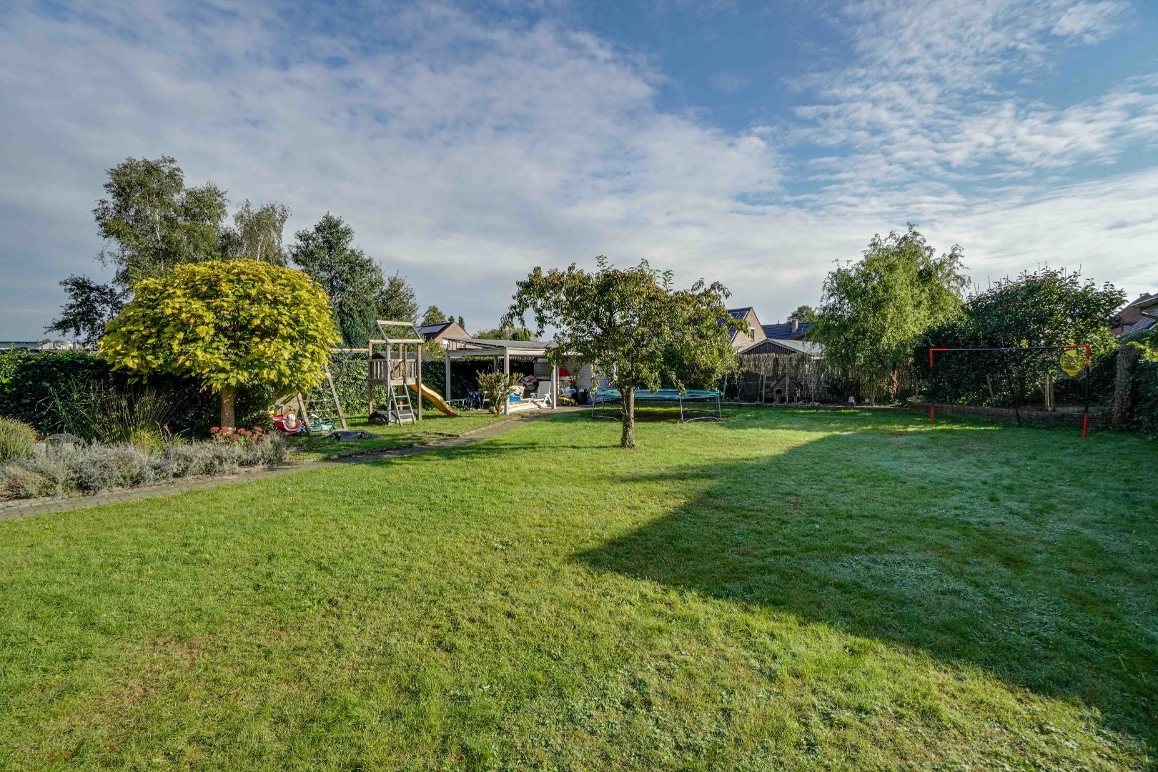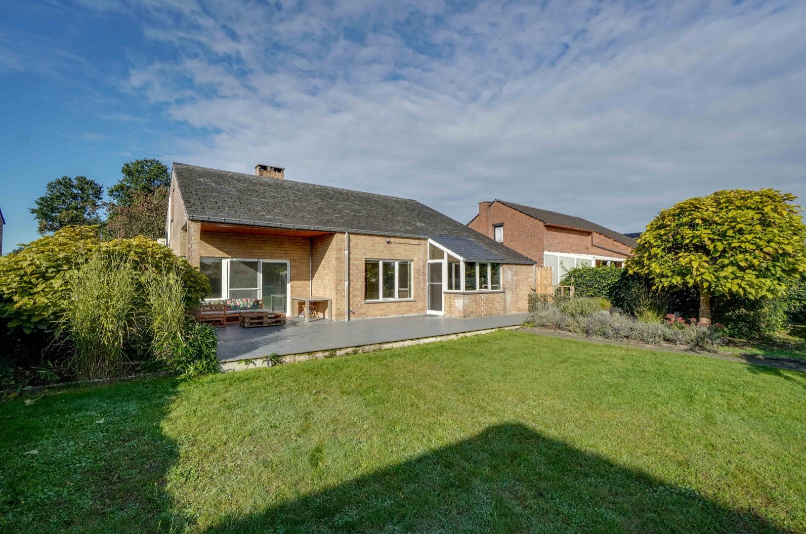De fraai aangelegde tuin met terras is volledig omheind, waardoor men kan genieten van voldoende privacy.