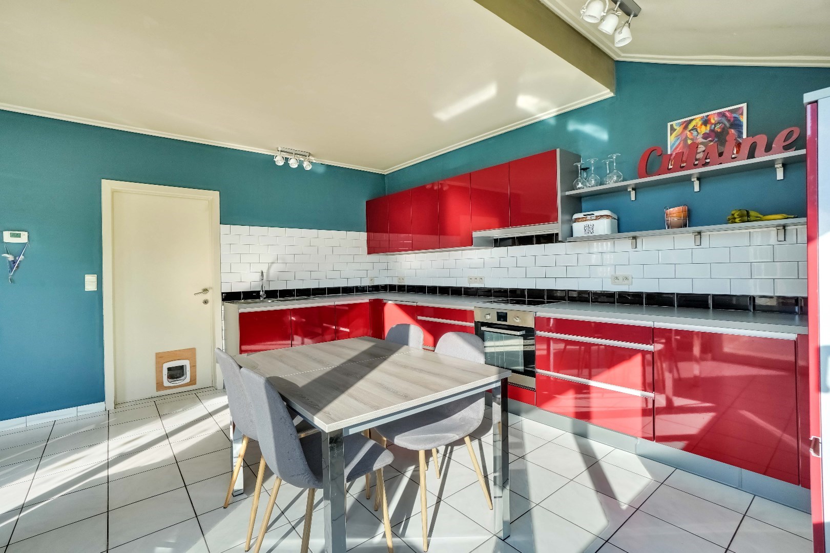 Vanuit de keuken is er toegang tot de praktische wasruimte en de inpandige garage.