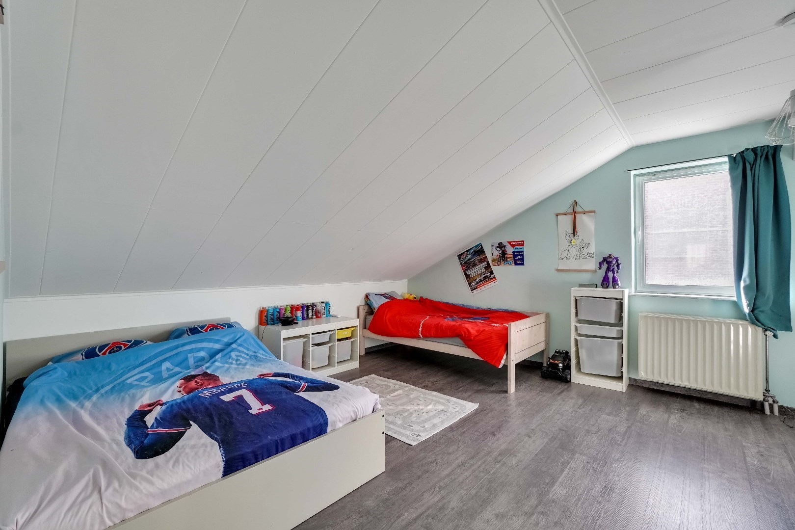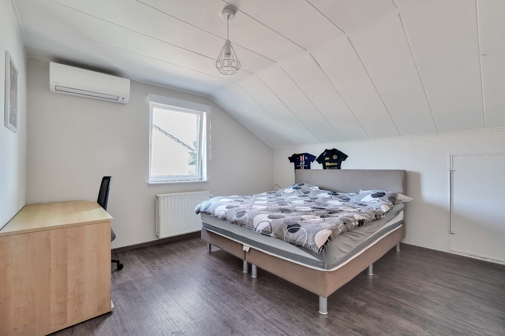 De slaapkamers variëren tussen de 15 en 25 m². Eén van de slaapkamers heeft momenteel al een eigen inloopkast, maar ook de andere slaapkamer heeft de mogelijkheid om de aangrenzende zolderruimte af te werken als dressing.